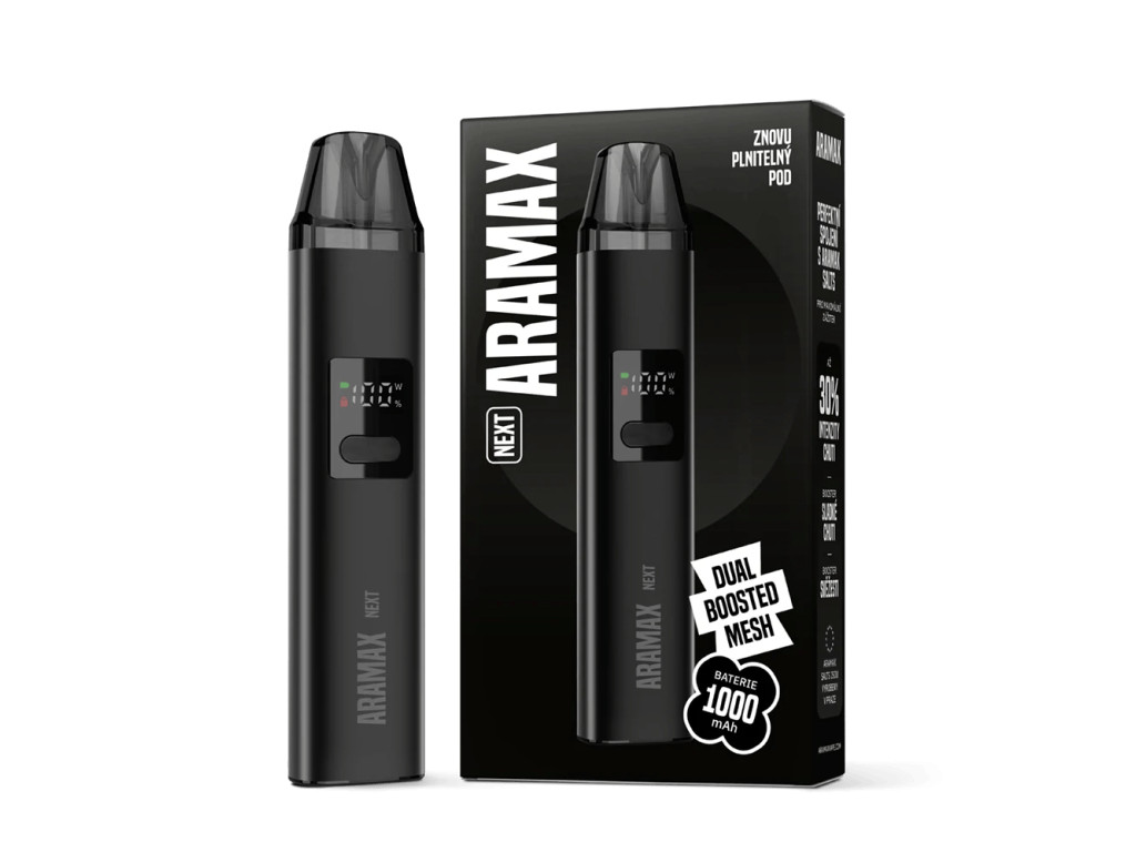 Hledáte POD, který zvládne všechno podstatné, vypadá dobře, nezahltí vás složitostmi a stojí jen pár korun? Aramax NEXT POD to trefuje přesně. Minimalistický design v kovovém těle zajišťuje nejen odolnost, ale i elegantní vzhled, který padne do oka i do ruky. Vpředu najdete velký a přehledný displej, díky kterému máte neustále přehled o stavu zařízení.