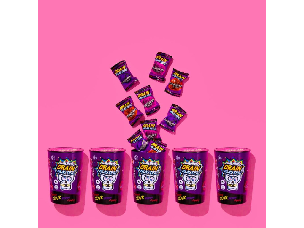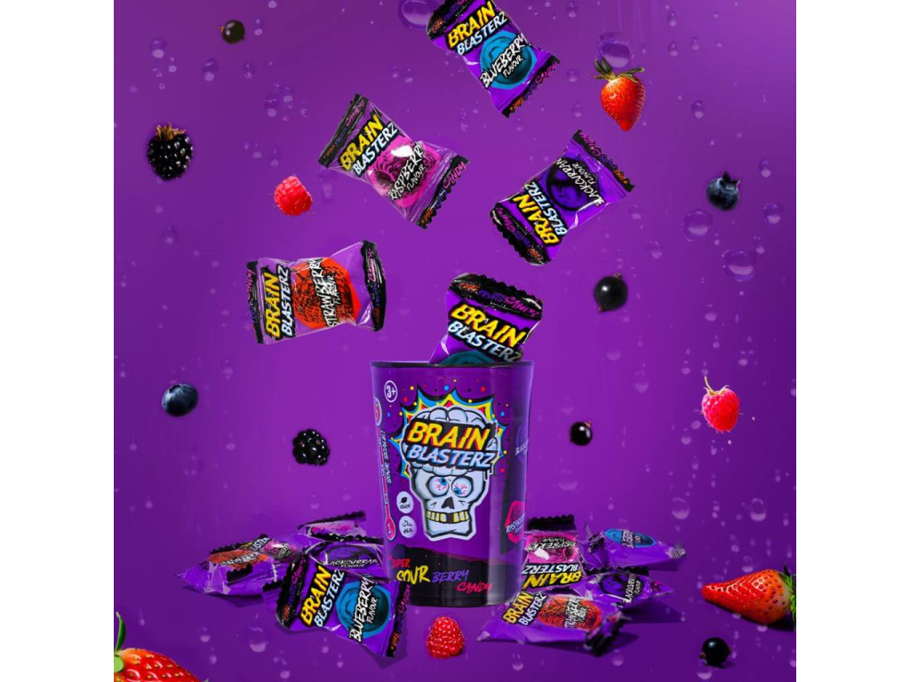 Brain Blasterz - Super Sour Berry Candy (kyselé bonbóny s příchutí jablka/borůvky/citronu/melounu) 48 g