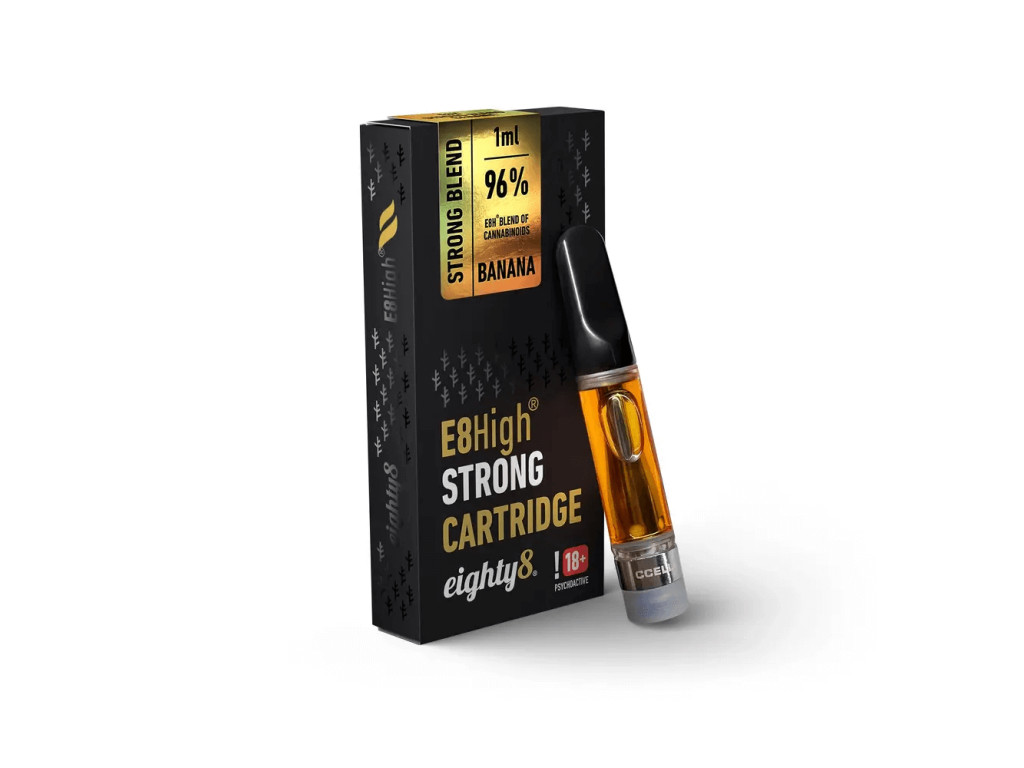 Představujeme E8High – extrémně výkonnou vape cartridge od Eighty8, která přináší nový standard v intenzitě a čistotě zážitku. Obsahuje 96 % E8High - originální směsí kanabinoidů stvořenou pro ty, co chtějí víc než “jenom vapování”.