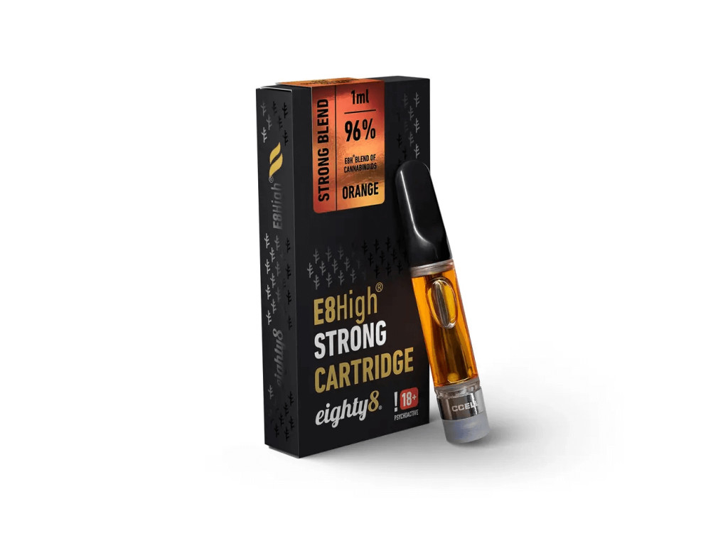 Představujeme E8High – extrémně výkonnou vape cartridge od Eighty8, která přináší nový standard v intenzitě a čistotě zážitku. Obsahuje 96 % E8High - originální směsí kanabinoidů stvořenou pro ty, co chtějí víc než “jenom vapování”.