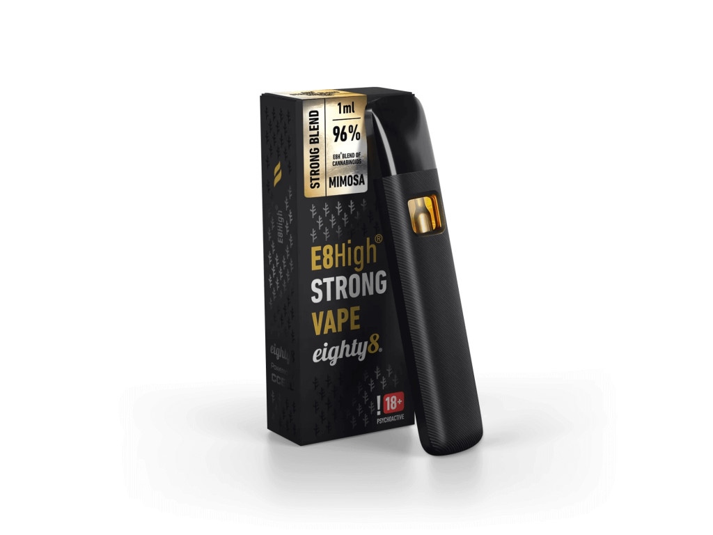 Představujeme E8High – extrémně výkonnou vape cartridge od Eighty8, která přináší nový standard v intenzitě a čistotě zážitku. Obsahuje 96 % E8High - originální směsí kanabinoidů stvořenou pro ty, co chtějí víc než “jenom vapování”.