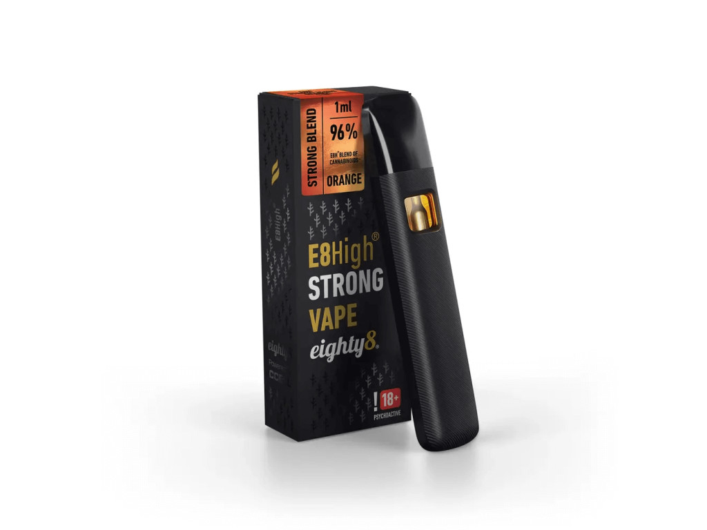 Představujeme E8High – extrémně výkonnou vape cartridge od Eighty8, která přináší nový standard v intenzitě a čistotě zážitku. Obsahuje 96 % E8High - originální směsí kanabinoidů stvořenou pro ty, co chtějí víc než “jenom vapování”.