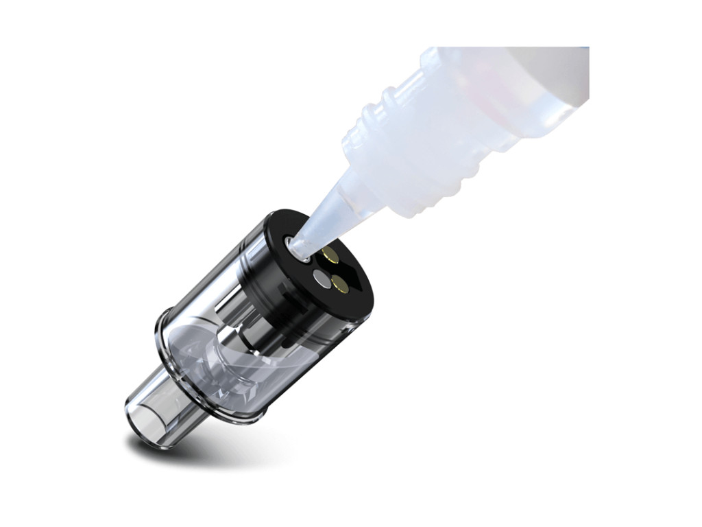 Vrchní část zařízení tvoří cartridge s objemem 2 ml, která obsahuje integrované žhavící tělísko s odporem 1,2 ohm. Díky preciznímu návrhu a stabilnímu výstupnímu výkonu poskytuje e-cigareta vynikající chuť e-liquidu. Inovativní spodní plnící systém s dětskou pojistkou zabraňuje vytékání e-liquidu a zajišťuje snadné plnění.