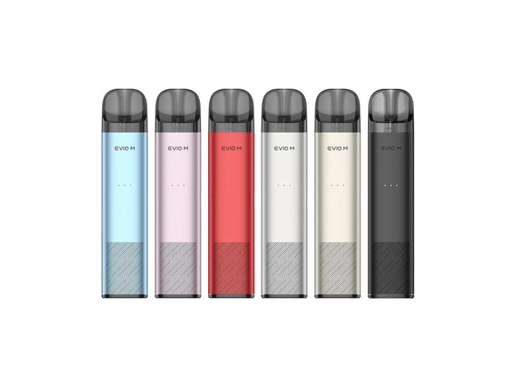 EVIO M má rozměry 109 x 24 x 14 mm a nabízí pohodlné MTL potahování (klasické šlukování). Je vybaven automatickým spínáním potahu, takže není třeba mačkat žádné tlačítko – stačí jen potáhnout a vapovat. Tento model obsahuje cartridge s odporem 0,8 Ω a objemem 2,8 ml, což zajišťuje výborné podání chuti a dostatečnou kapacitu pro dlouhé hodiny nerušeného vapování. Dobíjení je rychlé a pohodlné díky USB-C portu.