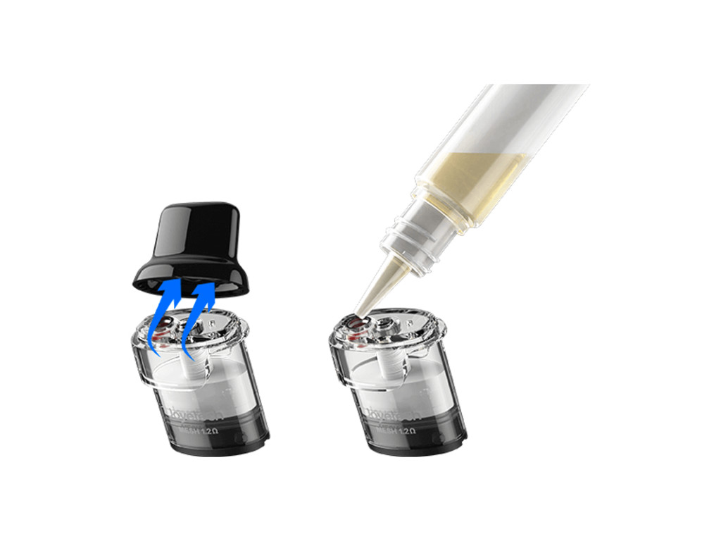 - WideWick Air cartridge: Obsahuje mesh tělísko s odporem 1,2 ohm a speciální vatu pro efektivní absorpci e-liquidu. Kapacita cartridge je 2 ml a plní se snadno díky vrchnímu systému plnění se speciální membránou.