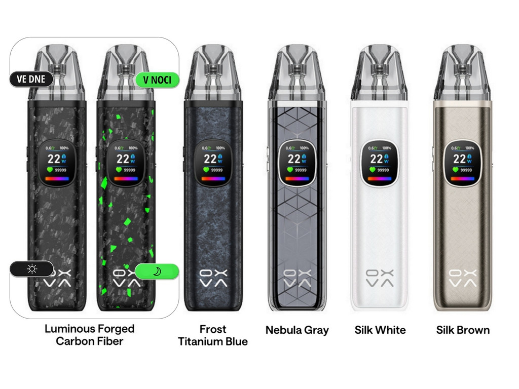 Minimalismus tady nehledejte. OXVA Xlim Pro 2 DNA je výrazný, prémiový a promyšlený do posledního detailu. Od zakulaceného HD displeje přes luminiscenční karbon až po intuitivní ovládání. A právem získal titul „nejkrásnější e-cigareta roku 2025“.