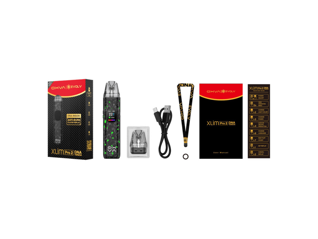 Minimalismus tady nehledejte. OXVA Xlim Pro 2 DNA je výrazný, prémiový a promyšlený do posledního detailu. Od zakulaceného HD displeje přes luminiscenční karbon až po intuitivní ovládání. A právem získal titul „nejkrásnější e-cigareta roku 2025“.