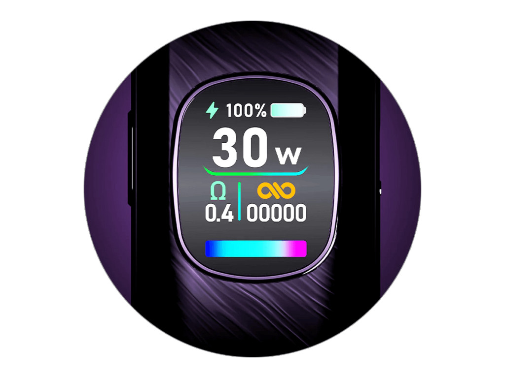 SBarevný TFT HD displej s úhlopříčkou 0,56 palce je jednou z hlavních předností tohoto modelu. Nabízí vysokou hustotu pixelů a vyšší jas oproti předchozí generaci, což zajišťuje skvělou čitelnost a plynulé nastavení všech parametrů. Displej je skutečně pastvou pro oči a umožňuje intuitivní ovládání e-cigarety.