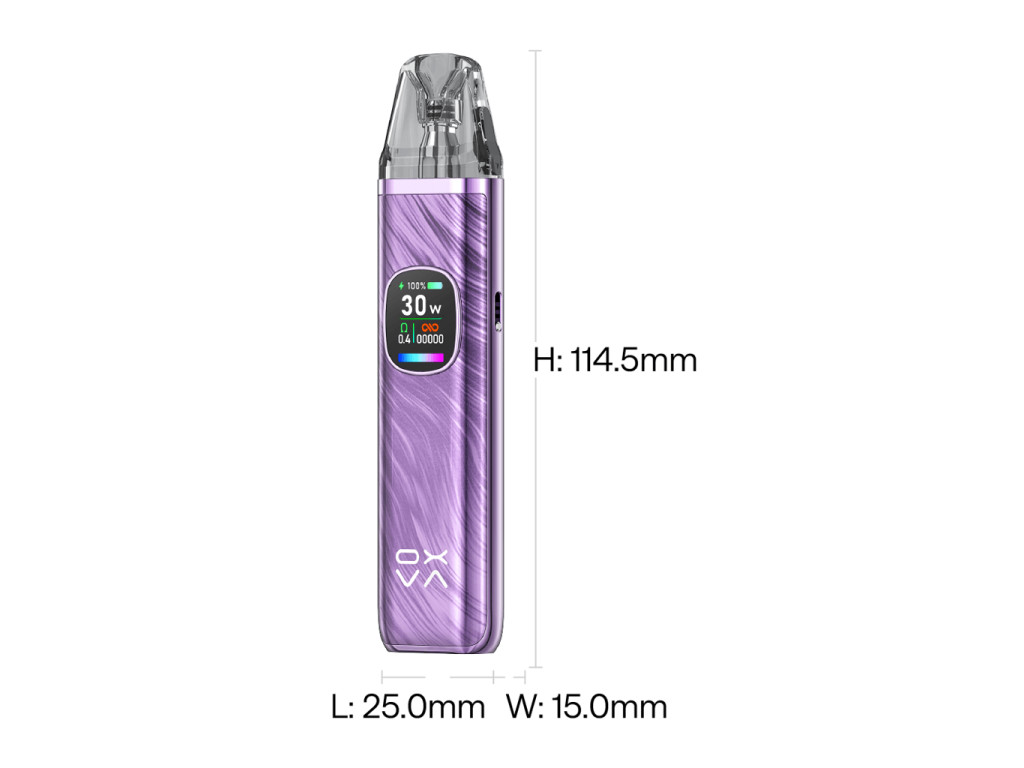 Tělo OXVA Xlim Pro 2 je vyrobeno ze zinkové slitiny s krásně zaoblenými křivkami, které perfektně padnou do dlaně. Díky nízké hmotnosti a kompaktním rozměrům je tato e-cigareta snadno přenosná. Design dominuje kulatý HD displej na předním ovládacím panelu, který dodává zařízení moderní a stylový vzhled.