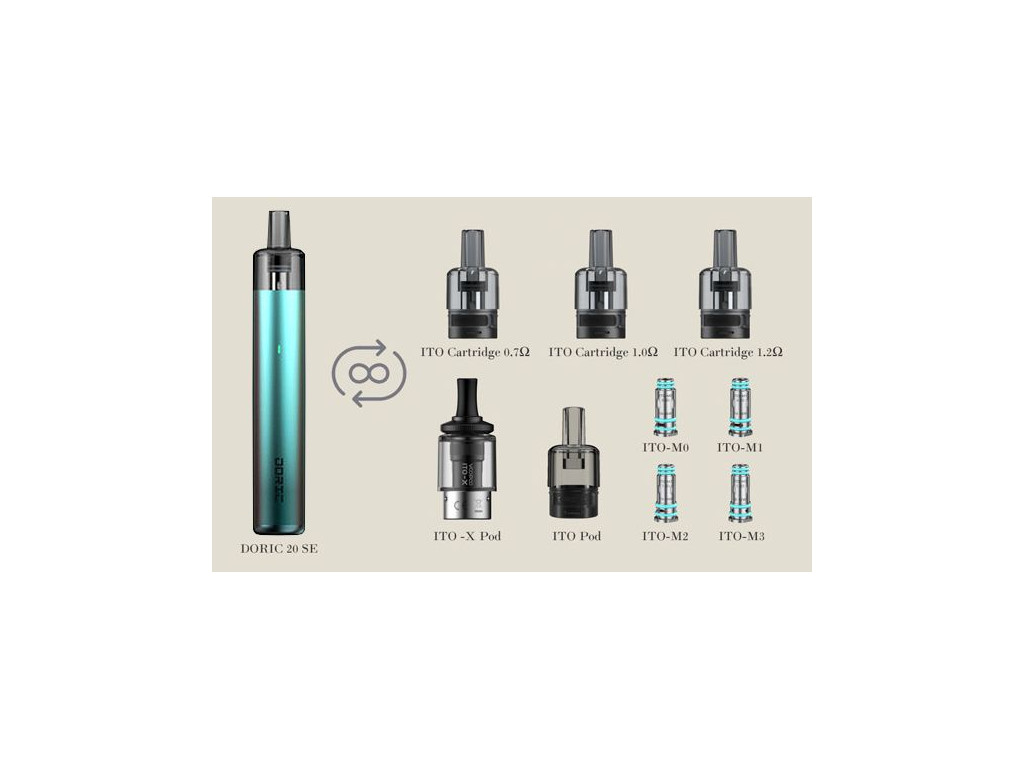 DORIC 20 SE se vyznačuje dlouhou životností cartridge, která umožňuje až 10 dní vaping s jednou náplní. To znamená výrazně nižší náklady na spotřebu ve srovnání s tradičními cigaretami a jednorázovými e-cigaretami. Cartridge s kapacitou 2 ml je navíc vybavena systémem proti úniku kondenzátu, což zajišťuje čistý a bezproblémový provoz.